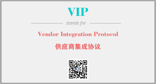 上述内容是“Vendor Integration Protocol”作为“VIP”的缩写,解释为“供应商集成协议”时的信息,以及英文缩略词VIP所代表的英文单词,其对应的中文拼音、详细解释以及在英文中的流行度和相关分类、应用领域及应用示例等。