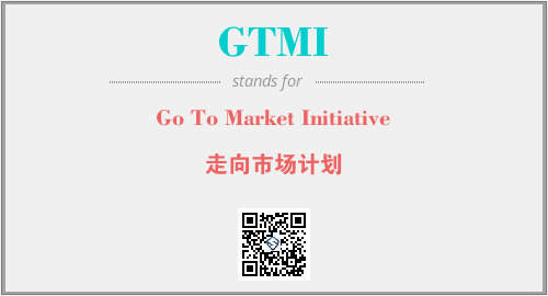 英文缩略词“GTMI”经常作为“Go To Market Initiative”的英文缩写来使用,中文表示:“走向市场计划”。本文将详细介绍英文缩写词GTMI所代表英文单词,其对应的中文拼音、详细解释以及在英语中的流行度。此外,还有关于缩略词GTMI的分类、应用领域及相关应用示例等。