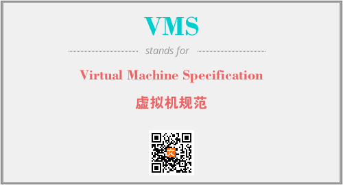 英文缩略词“VMS”经常作为“Virtual Machine Specification”的英文缩写来使用,中文表示:“虚拟机规范”。本文将详细介绍英文缩写词VMS所代表英文单词,其对应的中文拼音、详细解释以及在英语中的流行度。此外,还有关于缩略词VMS的分类、应用领域及相关应用示例等。