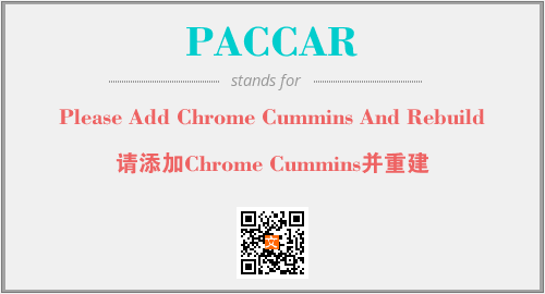 上述内容是“Please Add Chrome Cummins And Rebuild”作为“PACCAR”的缩写,解释为“请添加Chrome Cummins并重建”时的信息,以及英文缩略词PACCAR所代表的英文单词,其对应的中文拼音、详细解释以及在英文中的流行度和相关分类、应用领域及应用示例等。