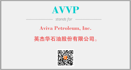 上述内容是“Aviva Petroleum, Inc.”作为“AVVP”的缩写,解释为“英杰华石油股份有限公司。”时的信息,以及英文缩略词AVVP所代表的英文单词,其对应的中文拼音、详细解释以及在英文中的流行度和相关分类、应用领域及应用示例等。