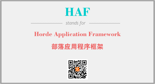 上述内容是“Horde Application Framework”作为“HAF”的缩写,解释为“部落应用程序框架”时的信息,以及英文缩略词HAF所代表的英文单词,其对应的中文拼音、详细解释以及在英文中的流行度和相关分类、应用领域及应用示例等。