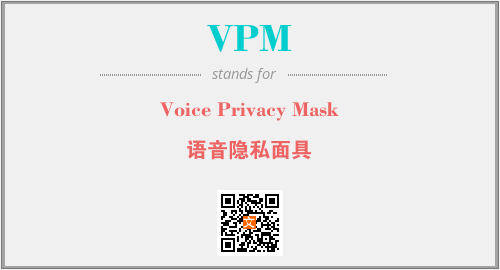 英文缩略词“VPM”经常作为“Voice Privacy Mask”的英文缩写来使用,中文表示:“语音隐私面具”。本文将详细介绍英文缩写词VPM所代表英文单词,其对应的中文拼音、详细解释以及在英语中的流行度。此外,还有关于缩略词VPM的分类、应用领域及相关应用示例等。