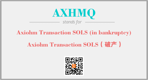 上述内容是“Axiohm Transaction SOLS (in bankruptcy)”作为“AXHMQ”的缩写,解释为“Axiohm Transaction SOLS(破产)”时的信息,以及英文缩略词AXHMQ所代表的英文单词,其对应的中文拼音、详细解释以及在英文中的流行度和相关分类、应用领域及应用示例等。