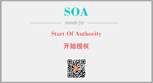 上述内容是“Start Of Authority”作为“SOA”的缩写,解释为“开始授权”时的信息,以及英文缩略词SOA所代表的英文单词,其对应的中文拼音、详细解释以及在英文中的流行度和相关分类、应用领域及应用示例等。