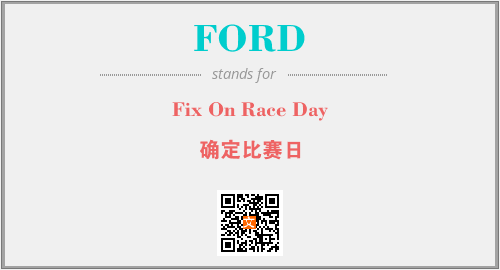 上述内容是“Fix On Race Day”作为“FORD”的缩写,解释为“确定比赛日”时的信息,以及英文缩略词FORD所代表的英文单词,其对应的中文拼音、详细解释以及在英文中的流行度和相关分类、应用领域及应用示例等。