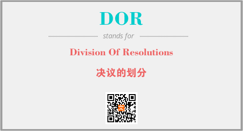 上述内容是“Division Of Resolutions”作为“DOR”的缩写,解释为“决议的划分”时的信息,以及英文缩略词DOR所代表的英文单词,其对应的中文拼音、详细解释以及在英文中的流行度和相关分类、应用领域及应用示例等。