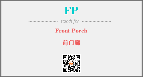 英文缩略词“FP”经常作为“Front Porch”的英文缩写来使用,中文表示:“前门廊”。本文将详细介绍英文缩写词FP所代表英文单词,其对应的中文拼音、详细解释以及在英语中的流行度。此外,还有关于缩略词FP的分类、应用领域及相关应用示例等。