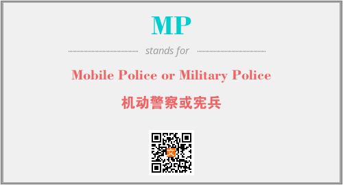 英文缩略词“MP”经常作为“Mobile Police or Military Police”的英文缩写来使用,中文表示:“机动警察或宪兵”。本文将详细介绍英文缩写词MP所代表英文单词,其对应的中文拼音、详细解释以及在英语中的流行度。此外,还有关于缩略词MP的分类、应用领域及相关应用示例等。