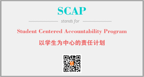 上述内容是“Student Centered Accountability Program”作为“SCAP”的缩写,解释为“以学生为中心的责任计划”时的信息,以及英文缩略词SCAP所代表的英文单词,其对应的中文拼音、详细解释以及在英文中的流行度和相关分类、应用领域及应用示例等。