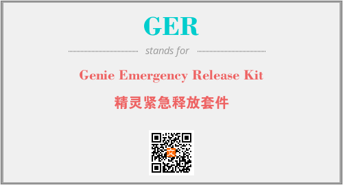 英文缩略词“GER”经常作为“Genie Emergency Release Kit”的英文缩写来使用,中文表示:“精灵紧急释放套件”。本文将详细介绍英文缩写词GER所代表英文单词,其对应的中文拼音、详细解释以及在英语中的流行度。此外,还有关于缩略词GER的分类、应用领域及相关应用示例等。