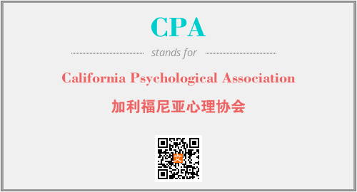 英文缩略词“CPA”经常作为“California Psychological Association”的英文缩写来使用,中文表示:“加利福尼亚心理协会”。本文将详细介绍英文缩写词CPA所代表英文单词,其对应的中文拼音、详细解释以及在英语中的流行度。此外,还有关于缩略词CPA的分类、应用领域及相关应用示例等。