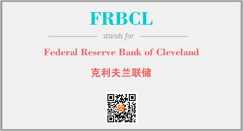 上述内容是“Federal Reserve Bank of Cleveland”作为“FRBCL”的缩写,解释为“克利夫兰联储”时的信息,以及英文缩略词FRBCL所代表的英文单词,其对应的中文拼音、详细解释以及在英文中的流行度和相关分类、应用领域及应用示例等。