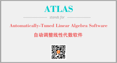 英文缩略词“ATLAS”经常作为“Automatically-Tuned Linear Algebra Software”的英文缩写来使用,中文表示:“自动调整线性代数软件”。本文将详细介绍英文缩写词ATLAS所代表英文单词,其对应的中文拼音、详细解释以及在英语中的流行度。此外,还有关于缩略词ATLAS的分类、应用领域及相关应用示例等。