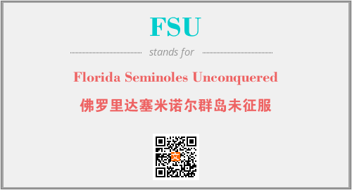 以上为Florida Seminoles Unconquered英文缩略词FSU的中文解释,以及该英文缩写在英语的流行度、分类和应用领域方面的信息。