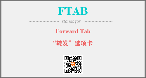 英文缩略词“FTAB”经常作为“Forward Tab”的英文缩写来使用,中文表示:““转发”选项卡”。本文将详细介绍英文缩写词FTAB所代表英文单词,其对应的中文拼音、详细解释以及在英语中的流行度。此外,还有关于缩略词FTAB的分类、应用领域及相关应用示例等。
