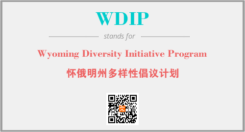 上述内容是“Wyoming Diversity Initiative Program”作为“WDIP”的缩写,解释为“怀俄明州多样性倡议计划”时的信息,以及英文缩略词WDIP所代表的英文单词,其对应的中文拼音、详细解释以及在英文中的流行度和相关分类、应用领域及应用示例等。