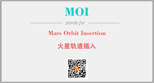 上述内容是“Mars Orbit Insertion”作为“MOI”的缩写,解释为“火星轨道插入”时的信息,以及英文缩略词MOI所代表的英文单词,其对应的中文拼音、详细解释以及在英文中的流行度和相关分类、应用领域及应用示例等。