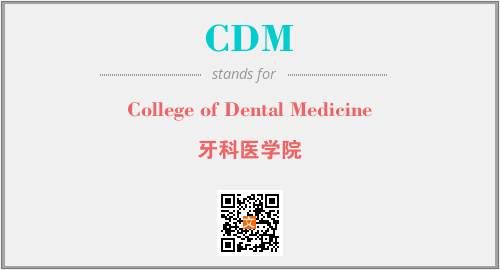 上述内容是“College of Dental Medicine”作为“CDM”的缩写,解释为“牙科医学院”时的信息,以及英文缩略词CDM所代表的英文单词,其对应的中文拼音、详细解释以及在英文中的流行度和相关分类、应用领域及应用示例等。