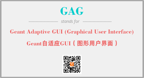 上述内容是“Geant Adaptive GUI (Graphical User Interface)”作为“GAG”的缩写,解释为“Geant自适应GUI(图形用户界面)”时的信息,以及英文缩略词GAG所代表的英文单词,其对应的中文拼音、详细解释以及在英文中的流行度和相关分类、应用领域及应用示例等。