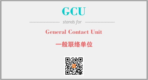 上述内容是“General Contact Unit”作为“GCU”的缩写,解释为“一般联络单位”时的信息,以及英文缩略词GCU所代表的英文单词,其对应的中文拼音、详细解释以及在英文中的流行度和相关分类、应用领域及应用示例等。