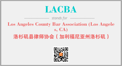 英文缩略词“LACBA”经常作为“Los Angeles County Bar Association (Los Angeles, CA)”的英文缩写来使用,中文表示:“洛杉矶县律师协会(加利福尼亚州洛杉矶)”。本文将详细介绍英文缩写词LACBA所代表英文单词,其对应的中文拼音、详细解释以及在英语中的流行度。此外,还有关于缩略词LACBA的分类、应用领域及相关应用示例等。