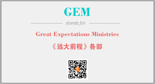英文缩略词“GEM”经常作为“Great Expectations Ministries”的英文缩写来使用,中文表示:“《远大前程》各部”。本文将详细介绍英文缩写词GEM所代表英文单词,其对应的中文拼音、详细解释以及在英语中的流行度。此外,还有关于缩略词GEM的分类、应用领域及相关应用示例等。
