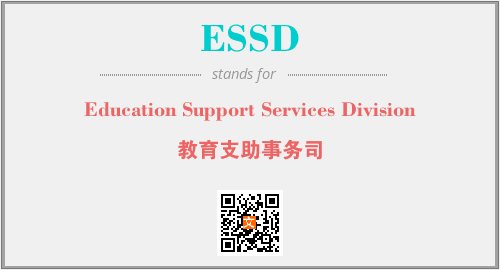 上述内容是“Education Support Services Division”作为“ESSD”的缩写,解释为“教育支助事务司”时的信息,以及英文缩略词ESSD所代表的英文单词,其对应的中文拼音、详细解释以及在英文中的流行度和相关分类、应用领域及应用示例等。
