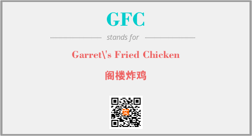 上述内容是“Garret\'s Fried Chicken”作为“GFC”的缩写,解释为“阁楼炸鸡”时的信息,以及英文缩略词GFC所代表的英文单词,其对应的中文拼音、详细解释以及在英文中的流行度和相关分类、应用领域及应用示例等。