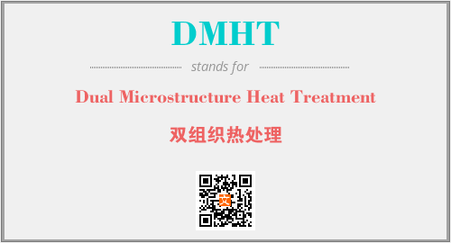 上述内容是“Dual Microstructure Heat Treatment”作为“DMHT”的缩写,解释为“双组织热处理”时的信息,以及英文缩略词DMHT所代表的英文单词,其对应的中文拼音、详细解释以及在英文中的流行度和相关分类、应用领域及应用示例等。