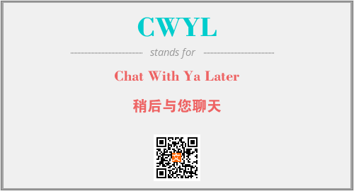 以上为Chat With Ya Later英文缩略词CWYL的中文解释,以及该英文缩写在英语的流行度、分类和应用领域方面的信息。