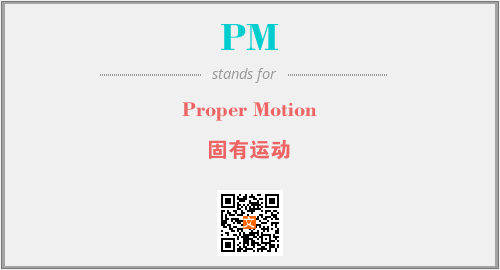 英文缩略词“PM”经常作为“Proper Motion”的英文缩写来使用,中文表示:“固有运动”。本文将详细介绍英文缩写词PM所代表英文单词,其对应的中文拼音、详细解释以及在英语中的流行度。此外,还有关于缩略词PM的分类、应用领域及相关应用示例等。