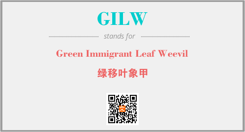 英文缩略词“GILW”经常作为“Green Immigrant Leaf Weevil”的英文缩写来使用,中文表示:“绿移叶象甲”。本文将详细介绍英文缩写词GILW所代表英文单词,其对应的中文拼音、详细解释以及在英语中的流行度。此外,还有关于缩略词GILW的分类、应用领域及相关应用示例等。
