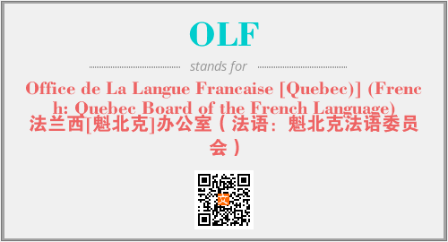 上述内容是“Office de La Langue Francaise [Quebec)] (French: Quebec Board of the French Language)”作为“OLF”的缩写,解释为“法兰西[魁北克]办公室(法语:魁北克法语委员会)”时的信息,以及英文缩略词OLF所代表的英文单词,其对应的中文拼音、详细解释以及在英文中的流行度和相关分类、应用领域及应用示例等。