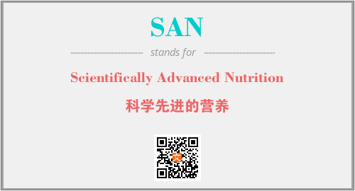 以上为Scientifically Advanced Nutrition英文缩略词SAN的中文解释,以及该英文缩写在英语的流行度、分类和应用领域方面的信息。