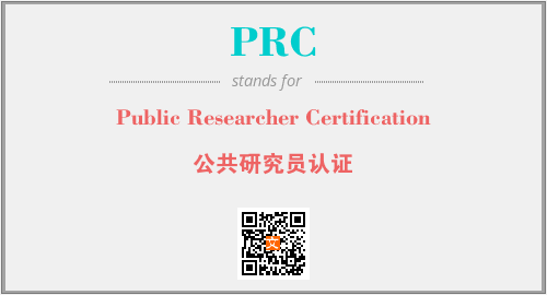 上述内容是“Public Researcher Certification”作为“PRC”的缩写,解释为“公共研究员认证”时的信息,以及英文缩略词PRC所代表的英文单词,其对应的中文拼音、详细解释以及在英文中的流行度和相关分类、应用领域及应用示例等。