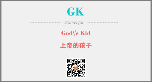 以上为God\'s Kid英文缩略词GK的中文解释,以及该英文缩写在英语的流行度、分类和应用领域方面的信息。