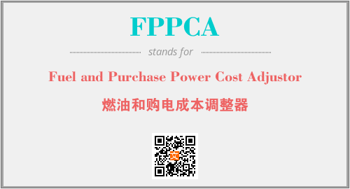英文缩略词“FPPCA”经常作为“Fuel and Purchase Power Cost Adjustor”的英文缩写来使用,中文表示:“燃油和购电成本调整器”。本文将详细介绍英文缩写词FPPCA所代表英文单词,其对应的中文拼音、详细解释以及在英语中的流行度。此外,还有关于缩略词FPPCA的分类、应用领域及相关应用示例等。