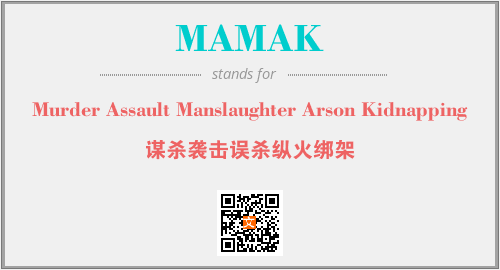 以上为Murder Assault Manslaughter Arson Kidnapping英文缩略词MAMAK的中文解释,以及该英文缩写在英语的流行度、分类和应用领域方面的信息。