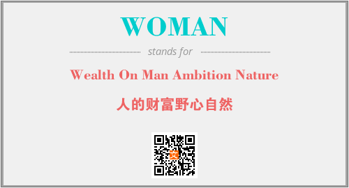 以上为Wealth On Man Ambition Nature英文缩略词WOMAN的中文解释,以及该英文缩写在英语的流行度、分类和应用领域方面的信息。