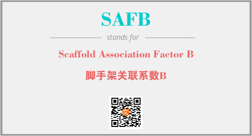 上述内容是“Scaffold Association Factor B”作为“SAFB”的缩写,解释为“脚手架关联系数B”时的信息,以及英文缩略词SAFB所代表的英文单词,其对应的中文拼音、详细解释以及在英文中的流行度和相关分类、应用领域及应用示例等。