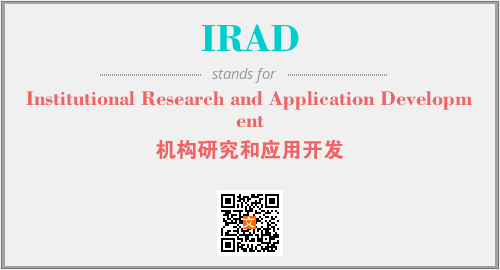 上述内容是“Institutional Research and Application Development”作为“IRAD”的缩写,解释为“机构研究和应用开发”时的信息,以及英文缩略词IRAD所代表的英文单词,其对应的中文拼音、详细解释以及在英文中的流行度和相关分类、应用领域及应用示例等。