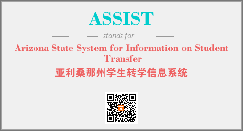 上述内容是“Arizona State System for Information on Student Transfer”作为“ASSIST”的缩写,解释为“亚利桑那州学生转学信息系统”时的信息,以及英文缩略词ASSIST所代表的英文单词,其对应的中文拼音、详细解释以及在英文中的流行度和相关分类、应用领域及应用示例等。