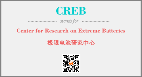 上述内容是“Center for Research on Extreme Batteries”作为“CREB”的缩写,解释为“极限电池研究中心”时的信息,以及英文缩略词CREB所代表的英文单词,其对应的中文拼音、详细解释以及在英文中的流行度和相关分类、应用领域及应用示例等。