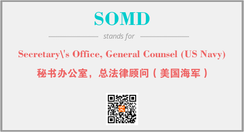 以上为Secretary\'s Office, General Counsel (US Navy)英文缩略词SOMD的中文解释,以及该英文缩写在英语的流行度、分类和应用领域方面的信息。