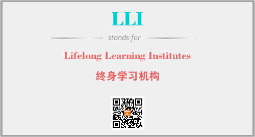 英文缩略词“LLI”经常作为“Lifelong Learning Institutes”的英文缩写来使用,中文表示:“终身学习机构”。本文将详细介绍英文缩写词LLI所代表英文单词,其对应的中文拼音、详细解释以及在英语中的流行度。此外,还有关于缩略词LLI的分类、应用领域及相关应用示例等。