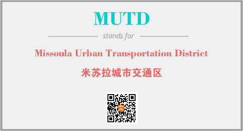 上述内容是“Missoula Urban Transportation District”作为“MUTD”的缩写,解释为“米苏拉城市交通区”时的信息,以及英文缩略词MUTD所代表的英文单词,其对应的中文拼音、详细解释以及在英文中的流行度和相关分类、应用领域及应用示例等。