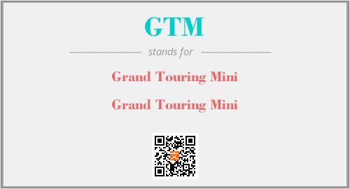 上述内容是“Grand Touring Mini”作为“GTM”的缩写,解释为“Grand Touring Mini”时的信息,以及英文缩略词GTM所代表的英文单词,其对应的中文拼音、详细解释以及在英文中的流行度和相关分类、应用领域及应用示例等。