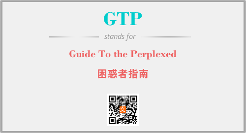 英文缩略词“GTP”经常作为“Guide To the Perplexed”的英文缩写来使用,中文表示:“困惑者指南”。本文将详细介绍英文缩写词GTP所代表英文单词,其对应的中文拼音、详细解释以及在英语中的流行度。此外,还有关于缩略词GTP的分类、应用领域及相关应用示例等。
