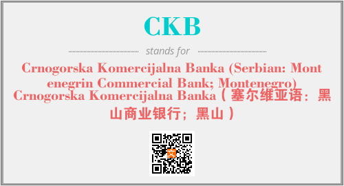 上述内容是“Crnogorska Komercijalna Banka (Serbian: Montenegrin Commercial Bank; Montenegro)”作为“CKB”的缩写,解释为“Crnogorska Komercijalna Banka(塞尔维亚语:黑山商业银行;黑山)”时的信息,以及英文缩略词CKB所代表的英文单词,其对应的中文拼音、详细解释以及在英文中的流行度和相关分类、应用领域及应用示例等。